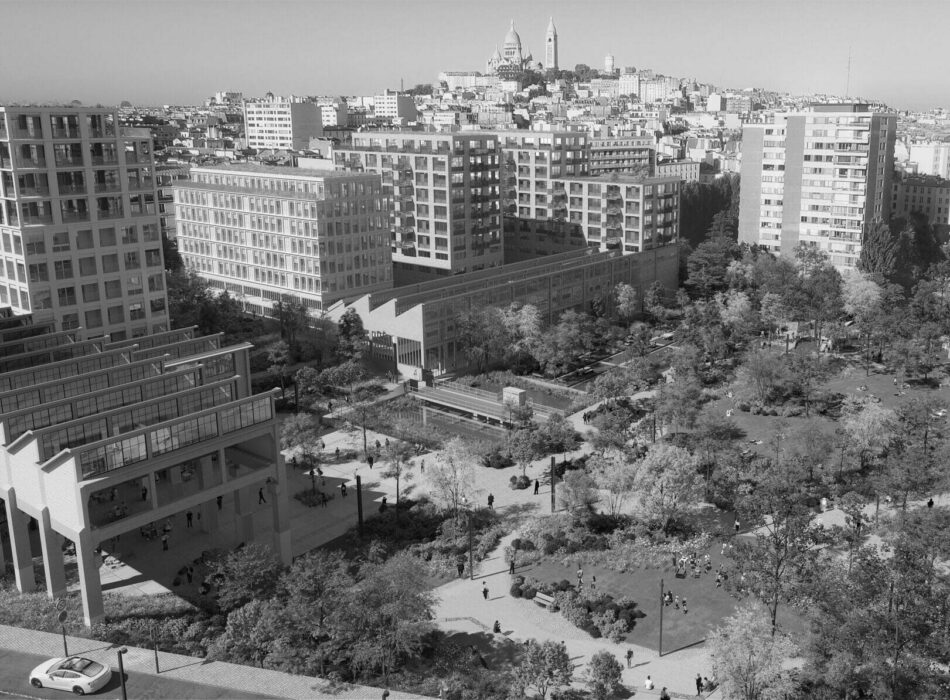 Les formes urbaines sont apparues, comme des éléments de lien qui articulent patrimoine industriel, ville haussmannienne, urbanisme de grand ensemble et voies ferrées. Elles sont tournées vers le soleil et rassemblées en deux ensembles avec, au Sud, des immeubles parisiens implantés à l’alignement de la rue Ordener et, au Nord, des immeubles formant un peigne avec la barre Andrézieux, gardant le centre du site libre pour accueillir un jardin public. Les immeubles sont constitués de volumes parallélépipédiques surmontés de maisons de ville, posés sur un socle de commerces et de services. Ils sont couverts par des toitures à deux pentes rappelant que « c’est le toit qui commence à fonder la maison » (1).